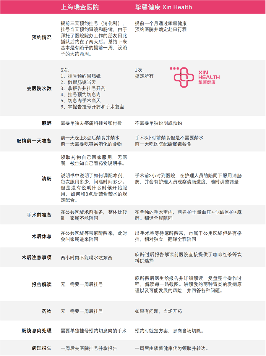 以前是因为没有找到完全合适的产品因此一直没有成行,这次就直接打了挚馨健康 XIN HEALTH 的客服电话询问了胃肠镜的事宜,没想到他们刚刚在尝试做这款产品,还没有全面推广,王女士就果断拜托他们帮忙预约了。